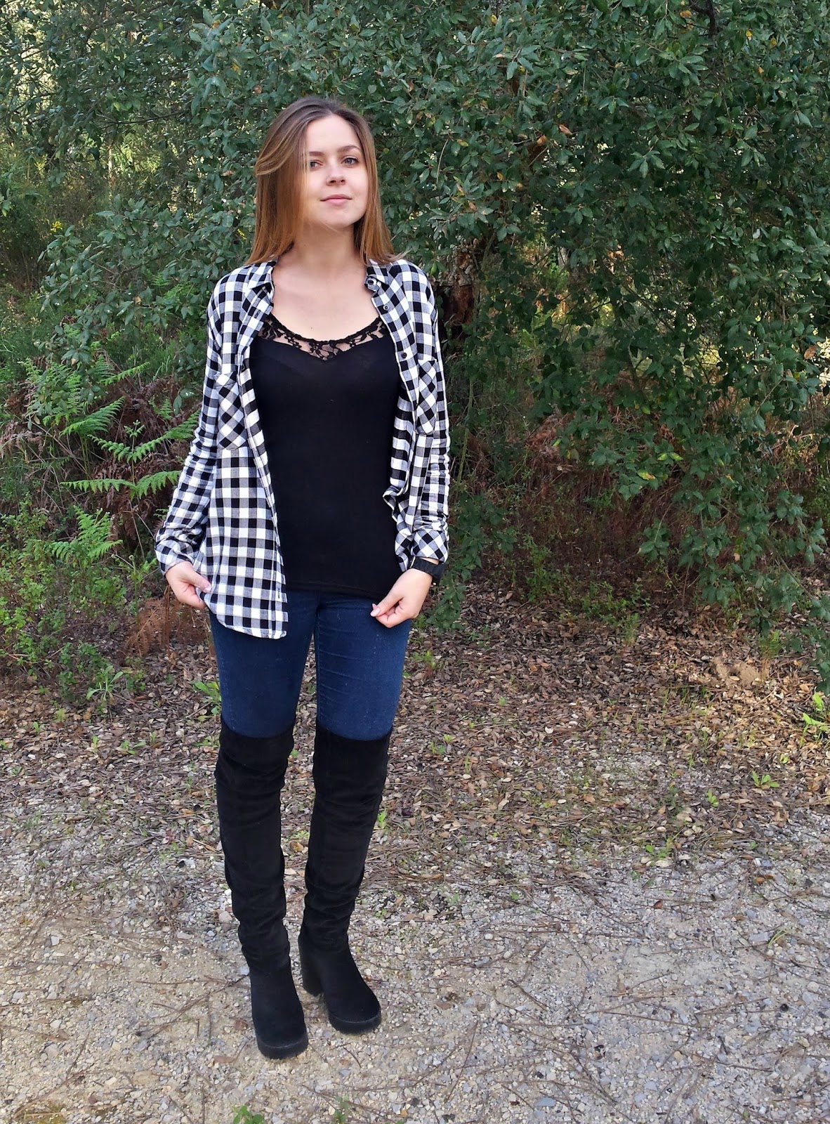 tenho grande inspiração nem tempo a perder. A camisa com xadrez preto e branco, prenda do meu namorado,